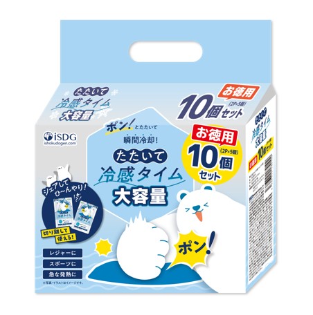 すでに単品タイプが夏季商材として多くのお客様にご利用いただいている「たたいて冷感タイム」より、よりお得でストックしやすい10個セット(2P×5個)が新たに登場。夏のレジャー・スポーツ・夏の暑さ対策など、幅広いシーンで活躍する便利な冷感アイテムです。